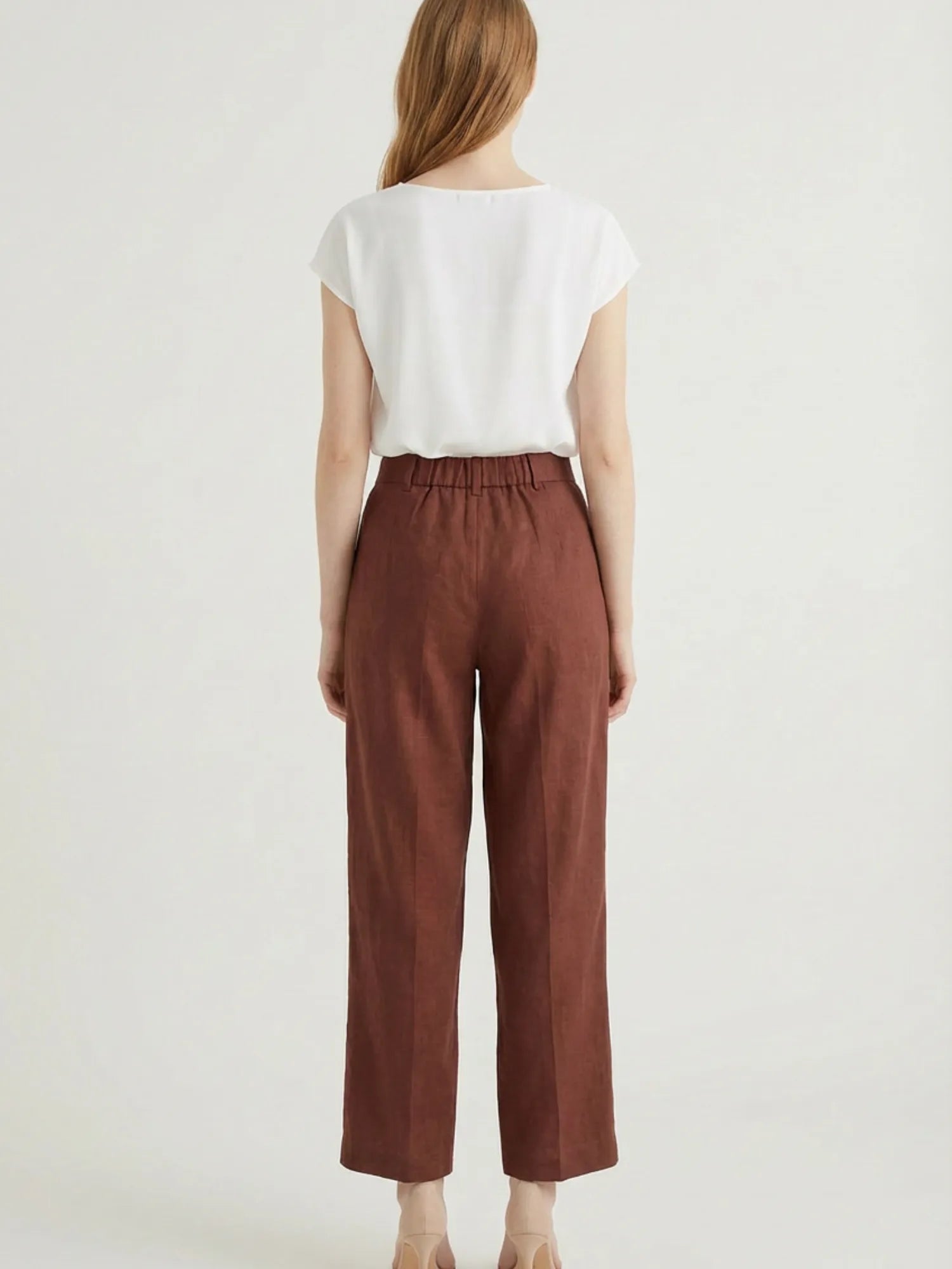 Pantalón largo de regular fit, diseñado para ofrecer una silueta equilibrada y cómoda. Incorpora pretina clásica con elástico en la parte posterior, que brinda mejor ajuste sin perder estructura, junto a pasadores para complementar con cinturón. Los pliegues en el delantero aportan un acabado elegante y estilizan la pierna, elevando el diseño con un toque sofisticado.