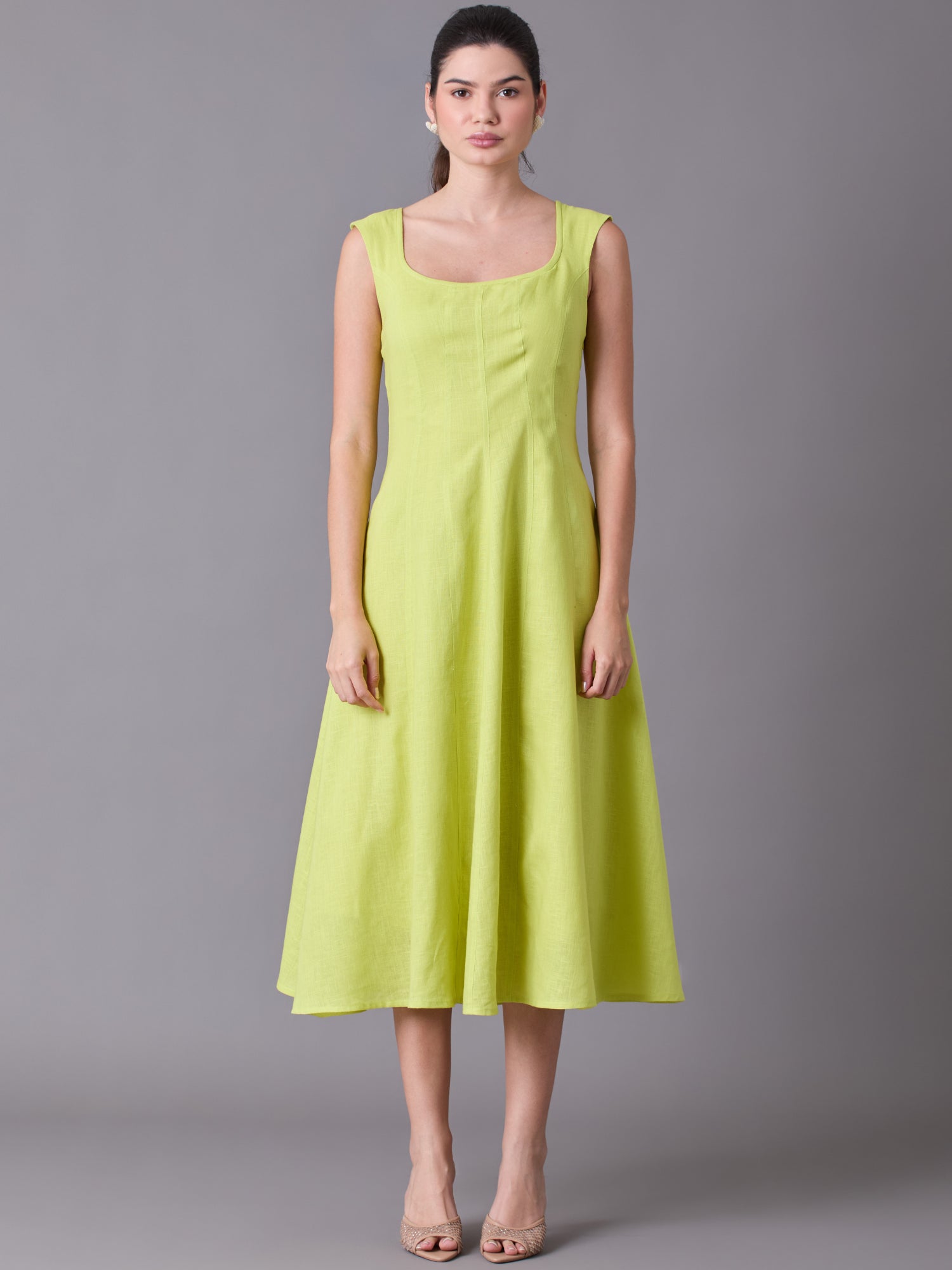 Vestido largo de escote cuadrado con tirantes gruesos, diseñado para un look elegante y atemporal. Su ajuste semi ceñido estiliza la silueta, ofreciendo comodidad y una caída favorecedora.