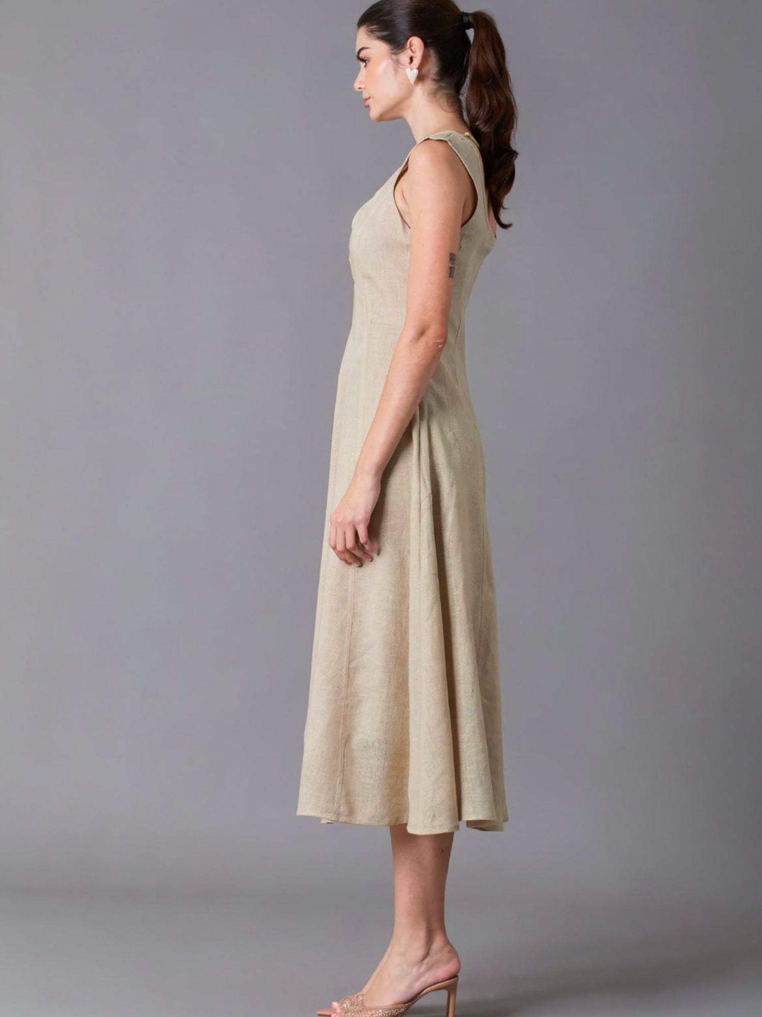 Vestido largo de escote cuadrado con tirantes gruesos, diseñado para un look elegante y atemporal. Su ajuste semi ceñido estiliza la silueta, ofreciendo comodidad y una caída favorecedora.