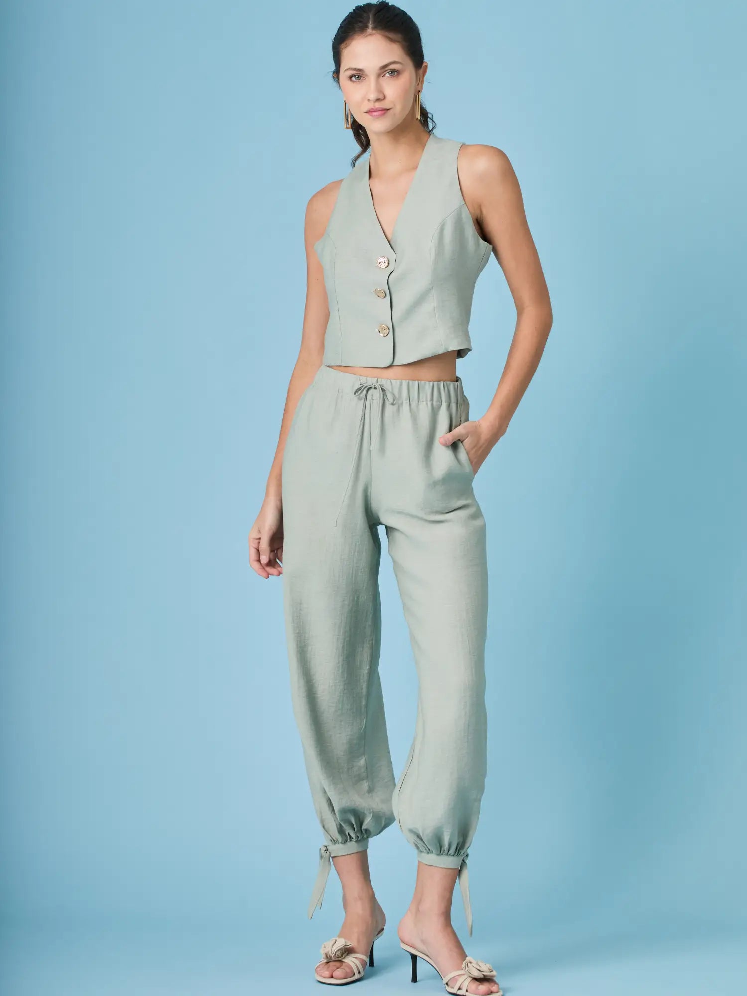 Pantalón de tiro alto con comfort fit, pensado para ofrecer libertad de movimiento sin perder estilo. La pretina resortada aporta ajuste suave y cómodo, mientras que el diseño tipo aladino con lazada en las botas añade un toque moderno y distintivo que estiliza la caída de la prenda.