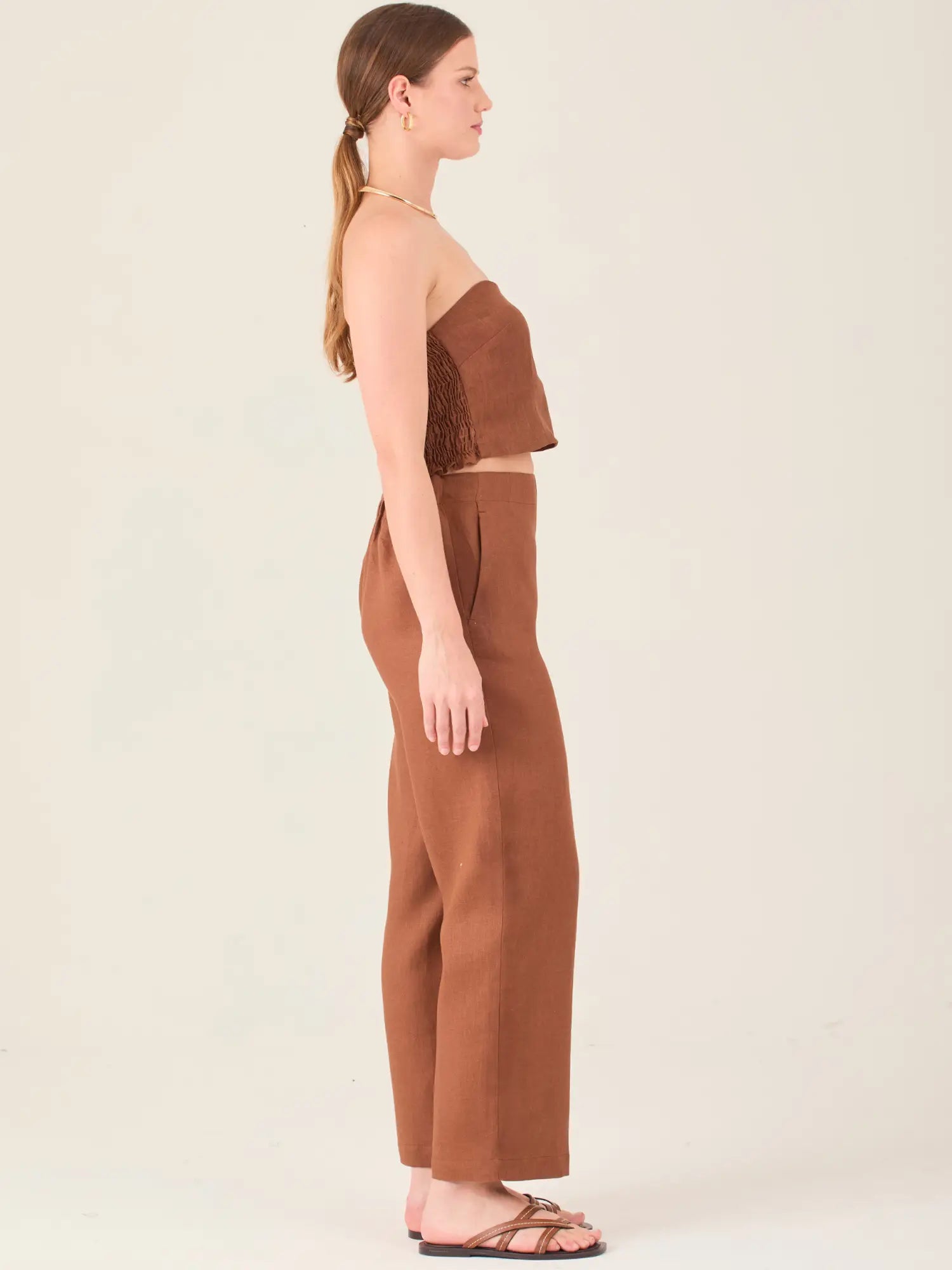 Este pantalón se distingue por su silueta recta y fluida que ofrece un porte elegante y versátil. De tiro medio y con bolsillos discretos al frente, aporta un aire relajado pero sofisticado. Su caída ligera lo convierte en una prenda fresca y cómoda, ideal para llevar tanto en el día a día como en ocasiones especiales. Un básico atemporal que se adapta con facilidad a distintos estilos y combina con todo